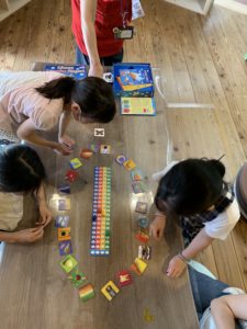 地域交流ボードゲーム会 投稿日: 2024/01/25投稿日 2024/01/25 2022年7月9日、みらくるにて地域交流ボードゲーム会が開催されました。 青梅こども未来の遊ぶの大好きなわくわく遊び隊のメンバーが中心になって企画しました。 親子連れにたくさんご来館いただき、賑やかに笑い声が溢れました。 Dr.エウレカ。よくみてね! ぶたは飛べるの?をプレイ中。動物のあれこれを楽しく学べちゃうゲーム。