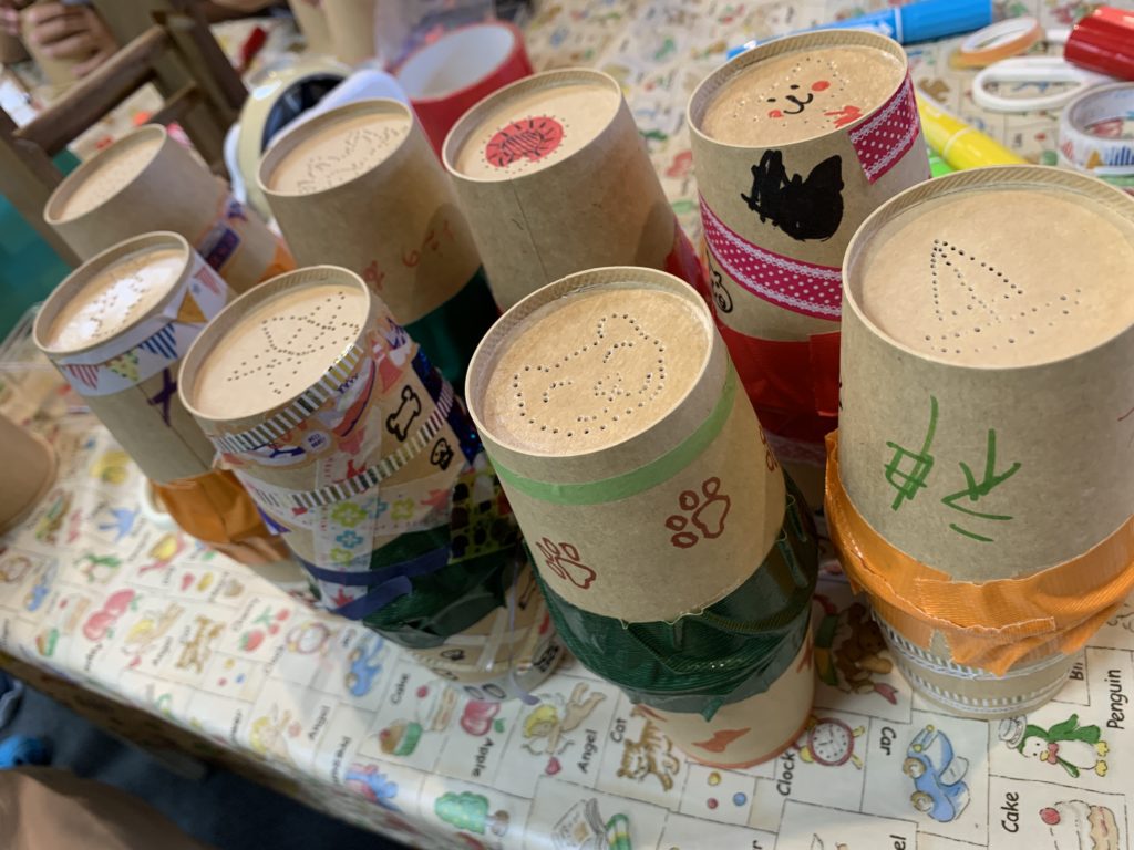 分光板シートを使って万華鏡づくり楽しみました。